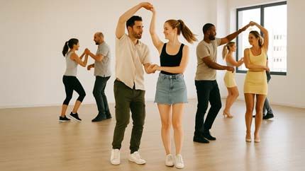 Latin Koppeldans: tijdens de 1ste of 2de les van een gestarte reeks